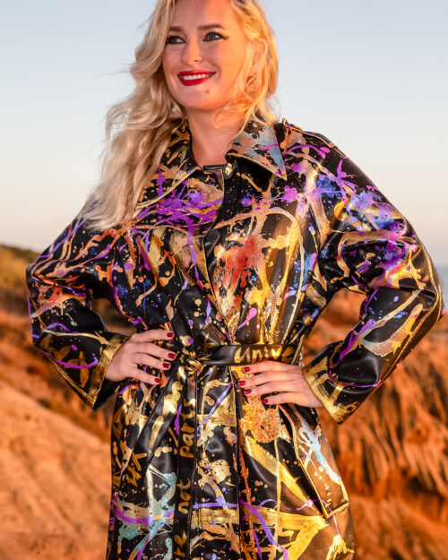 $888.00Classic chic with touch of avant-garde style. Hand painted vegan leather jacket.